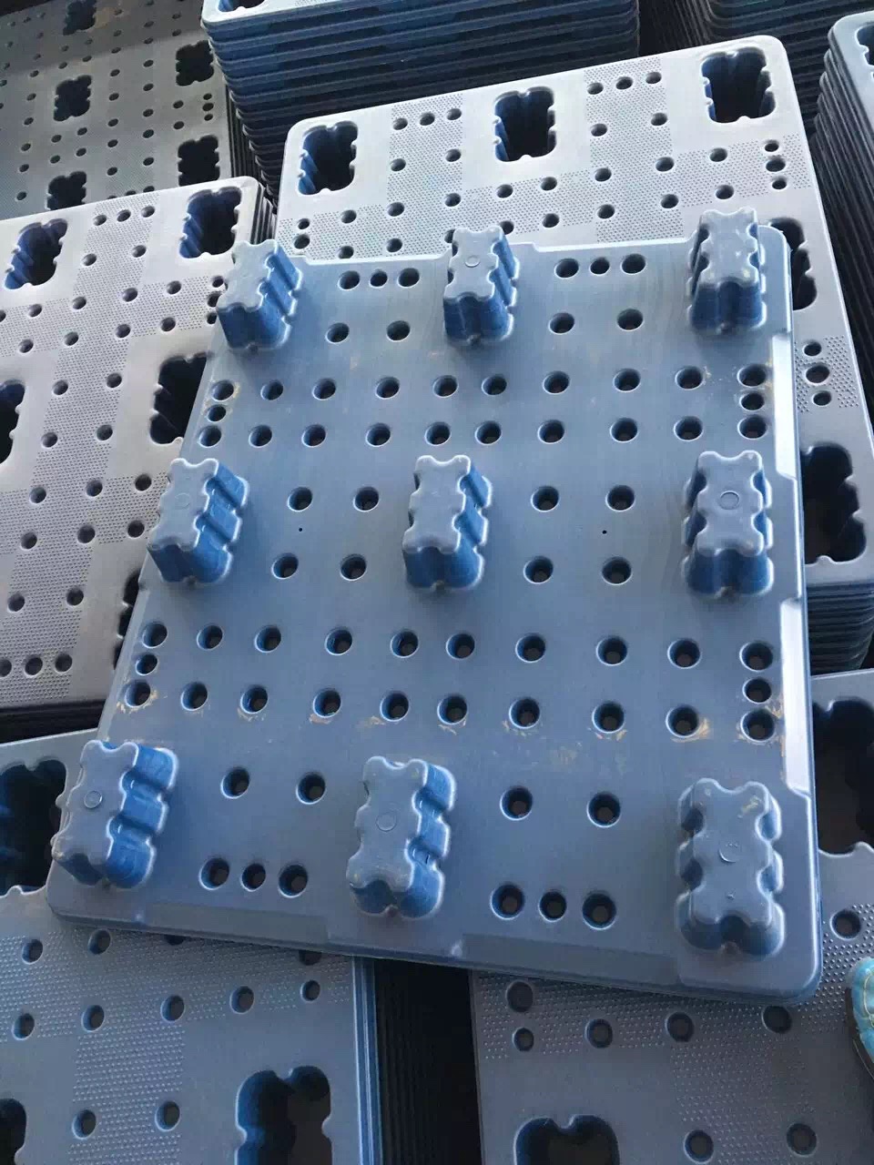 5、九腳塑料托盤(pán)的通常動(dòng)載為0.5T,靜載為1.5T。